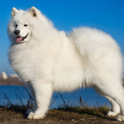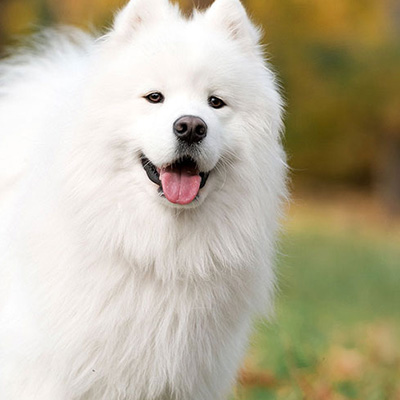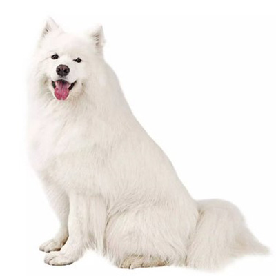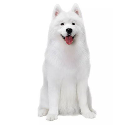 Appearance: Large, white double coat, smiling expression.